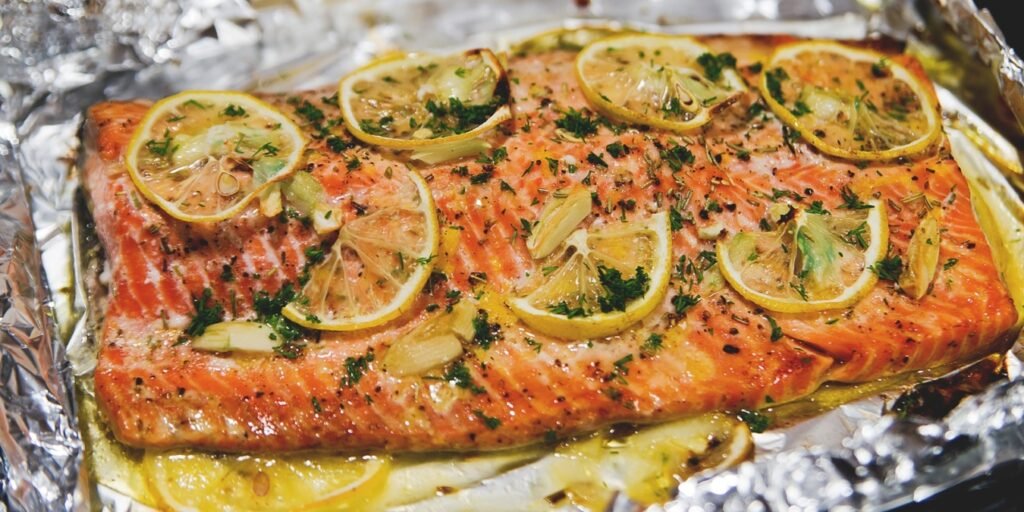 Загорніть лосось у фольгу або викладіть у форму для запікання, накривши фольгою.